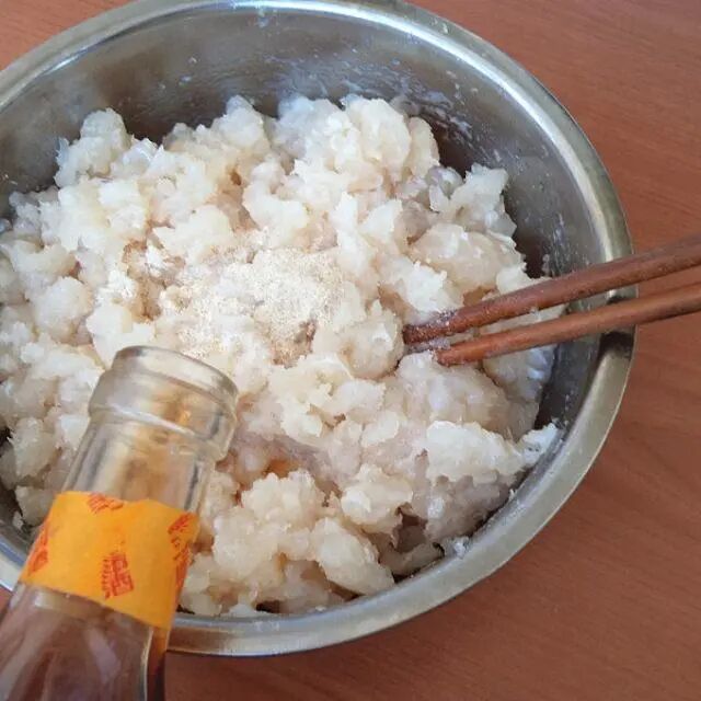 一般做鱼丸为取肉方便,选择肉嫩刺少的鱼种。我们这次用的是鲈鱼,肉质细嫩,没有一颗刺,虽然没有用太多的调味品,但做成的鱼丸味道鲜美,口感嫩滑,很不错。