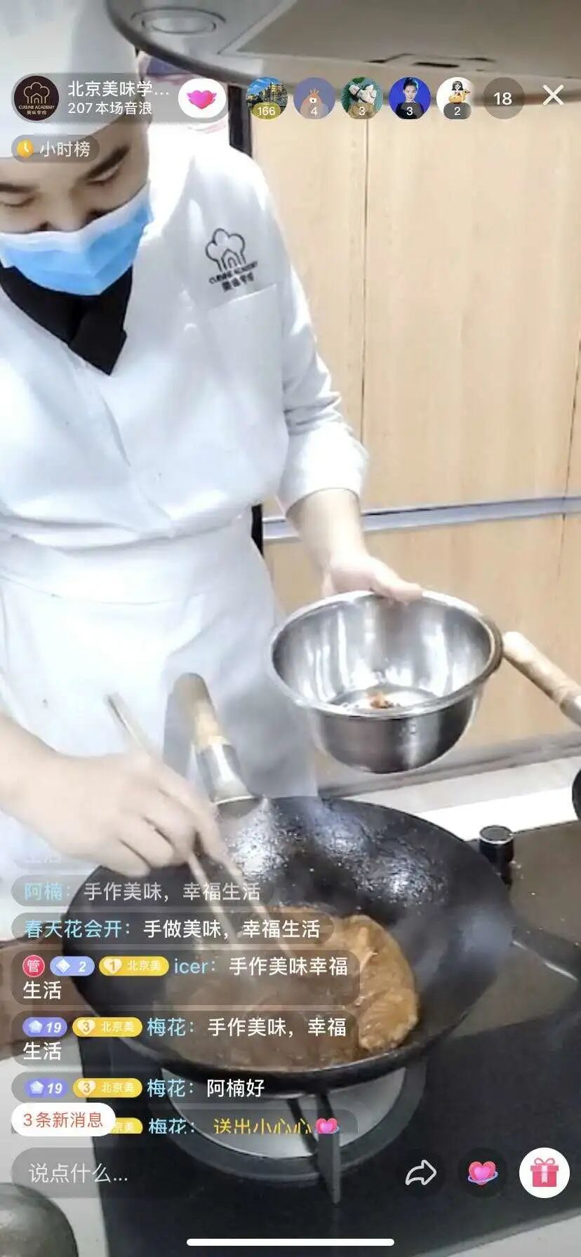 活动开始在抖音直播对话窗口编辑“手作美味幸福生活”,主持人随机截屏,在第一名的同学可获得2张价值“1000元代金券”(满五千可用)