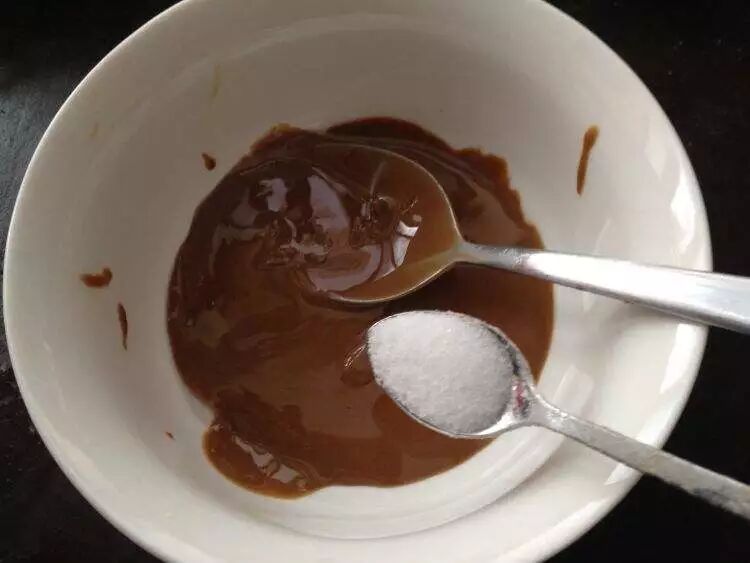 加入陈醋拌匀以后再加入2克盐、家里吃饭用的瓷勺,加入多半勺的白糖,再加入6勺的蜂蜜。基本上的原则是加入几汤勺的醋就加入几瓷勺的蜂蜜。