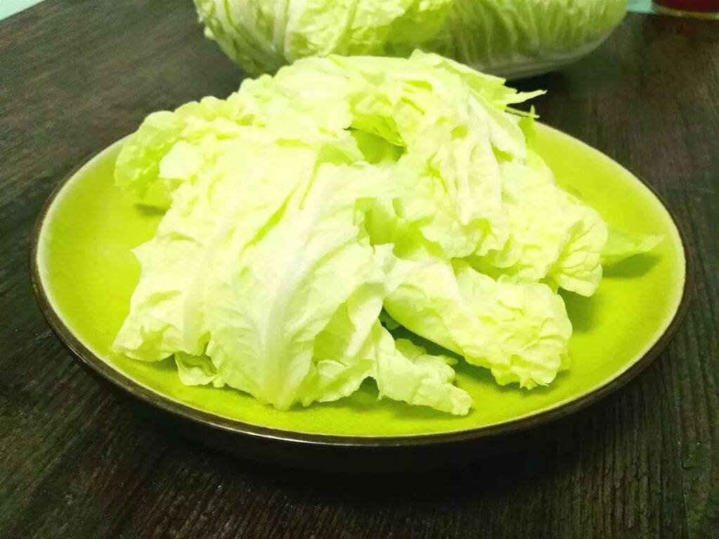 大白菜洗净,擦干水份,用手掰成大小合适的块状。