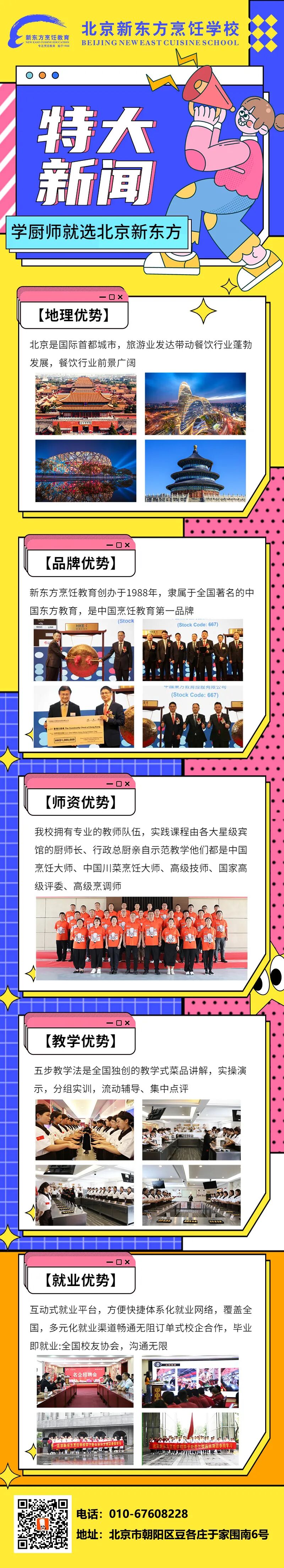 北京新东方烹饪学校在北京设有朝阳校区、大兴校区两个校区,地理位置优越。并且充分发挥首都优势,名师济济,教育资源好;一线城市,薪资水平高;名企聚集,就业机会多。高薪技能+学历保障+名企就业,北京新东方烹饪学校35年办学以来培养出了一批批符合时代需求的技能型人才。